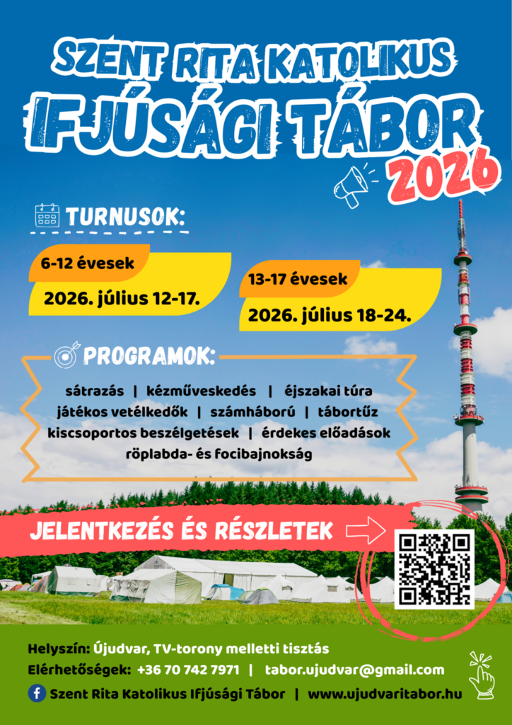 JELENTKEZÉS 2026 Családi nap 2026. július 12. Egy nap az Újudvari táborban! Részletek Kicsik turnusa 2026. július 12-17. 6-12 éves korosztály Részletek és jelentkezés Nagyok turnusa 2026. július 18-24. 13-17 éves korosztály Részletek és jelentkezés
